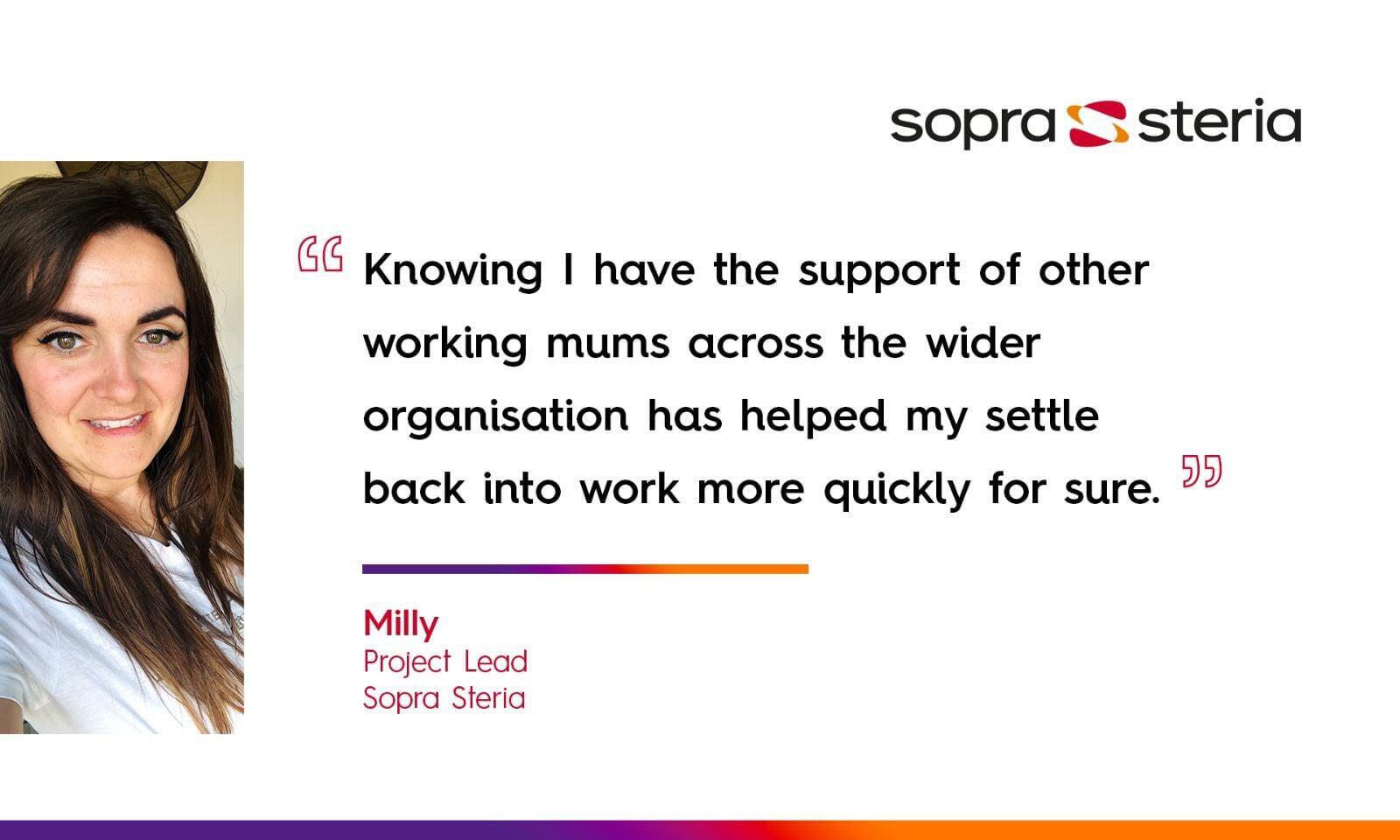 Sopra Steria's new maternity workshops are helping new mothers return to work with confidence. Participant Milly, who was initially anxious after a year off, found the workshops and subsequent group meetings provided a vital support network. Her manager, Tina, also believes these groups are crucial for helping new mums transition back into their careers.